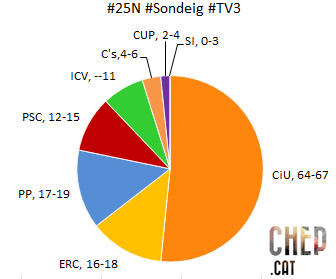 Ja vaig parlar fa uns dies de la llei d'Hondt i la gran diferència entre la primera força (CiU) i la segona (PSC, PP o ERC) fa que els darrers escons de cada circumscripció ballin. Per tant, aquestes enquestes diuen que CiU es mouria entre els 63 i els 71 escons amb només 35.000 vots de diferència. Això depèn de la participació i dels indecisios, que aquestes mateixes enquestes internes xifren al voltant del 5%, quan en les darreres eleccions només era l'1%.