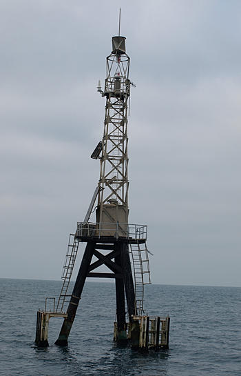 Després de debatre molts projectes, es va decidir construir una petita plataforma marina, on es va situar una torreta–far metàl·lica, amb 14 milles d’abast. Es va encendre per primera vegada el 4 d’octubre de 1983.